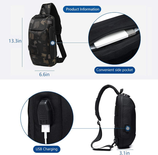 Anti Theft Sling Bag Crossbody Backpack USB Charging Port Waterproof Chest Bag